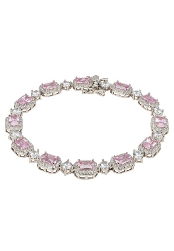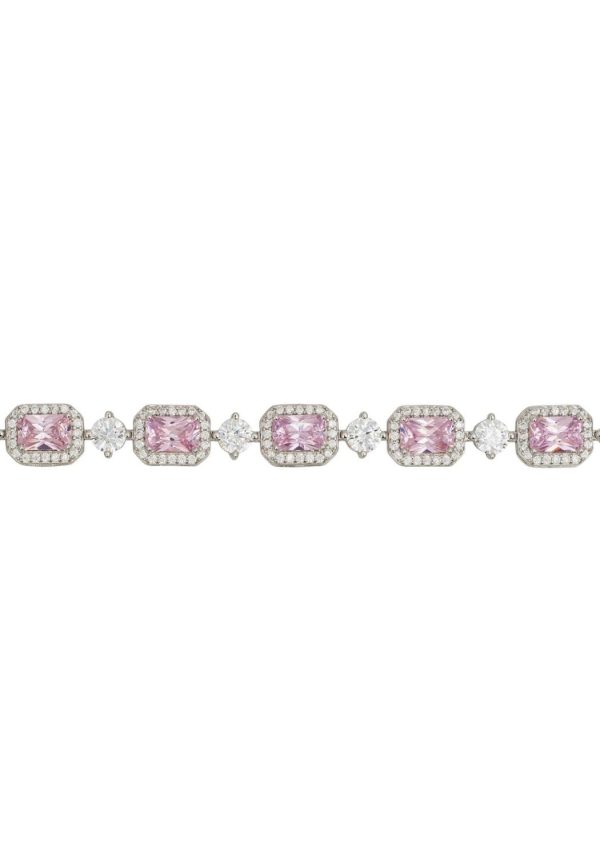 Introducing the Elena Gemstone Bracelet in Morganite and Silver, the ultimate versatile accessory designed to elevate any ensemble. Crafted from high-quality 925 silver, this bracelet features 12 eye-catching, lab-created rectangular Morganite gemstones, each lovingly framed by glittering cubic zirconia. As a finishing touch, a larger cubic zirconia sits between each gemstone, providing that extra bit of dazzle.