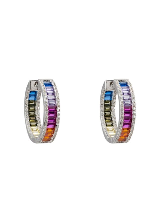 Embrace the joy of colour and let your personality shine with these beautiful Judy Rainbow Baguette Hoop Earrings. They are more than just an accessory; they are a celebration of style and sparkle!