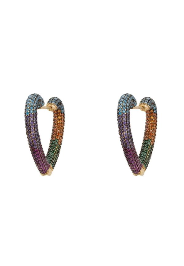 Meticulously crafted and beautifully styled open heart huggie hoop earrings that sparkle with multi coloured zirconia set to imitate the bands of a rainbow.