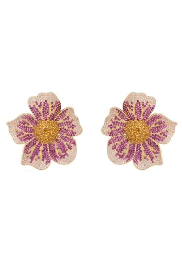 These large pansy earrings are adorned with sparkling cubic zirconia, with graduated shades of pink on the petals and vibrant yellow at its centre. Three dimensional in design for added interest, which will add a touch of sophisticated style to any outfit.